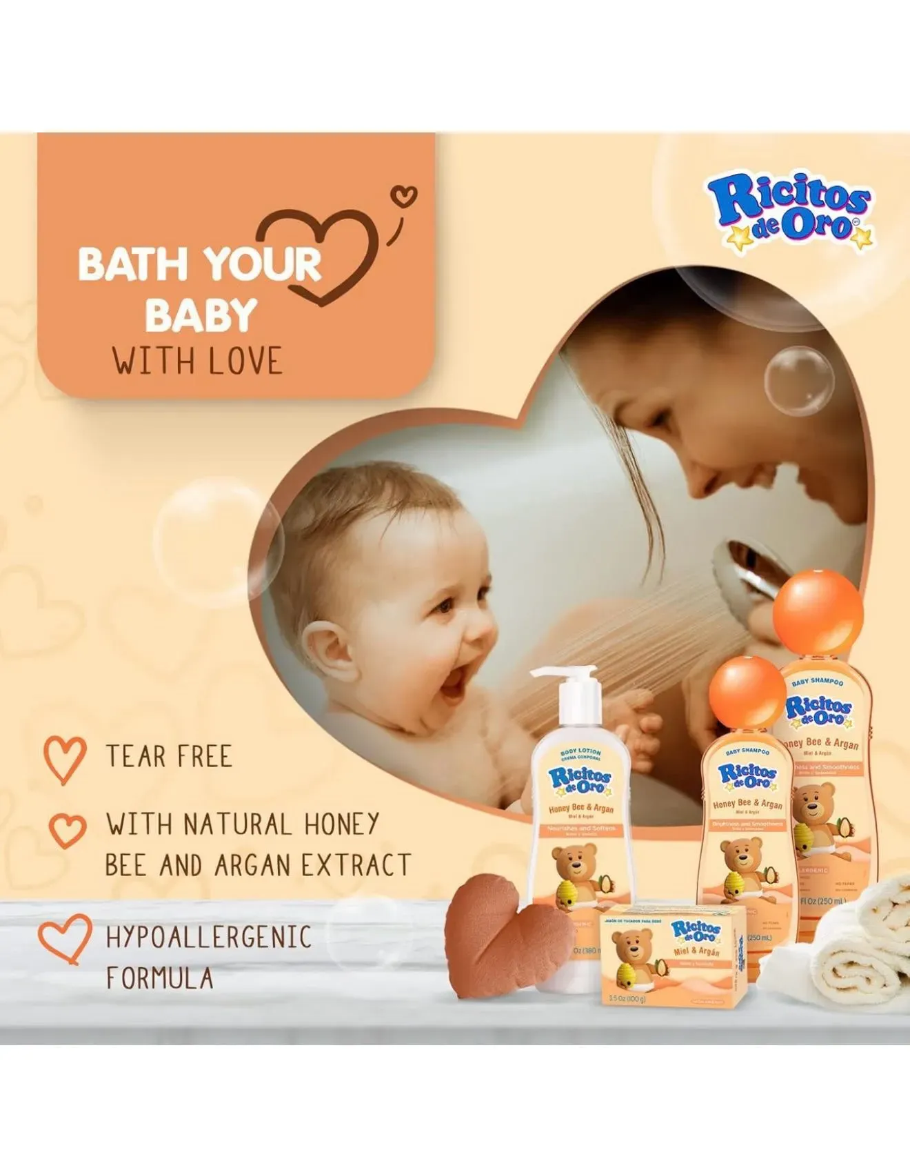 Confía en la tradición y la suavidad de Ricitos de Oro. Nuestra línea de champús hipoalergénicos está especialmente formulada para el cabello delicado de tu bebé, limpiando suavemente mientras cuida el cuero cabelludo.